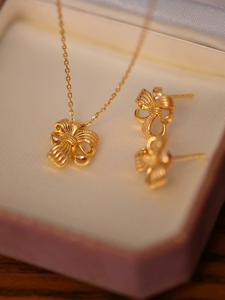 ピアスとネックレスのセットは、立体的なデザインが施され、あらゆる角度から美しさを放ちます。フロッキーフラワーのモチーフが上品なエレガンスを引き立て、クラシカルな美しさと現代的なスタイルを見事に融合。日常から特別なシーンまで幅広く活躍するこのシリーズは、ピアスが耳元に華やかさを、ネックレスが胸元に上品な輝きを添えます。レトロなデザインとフロッキーフラワーの優雅さが、あなたのスタイルに洗練された美しさをもたらします。気品と個性を纏い、特別なひとときを演出しましょう。